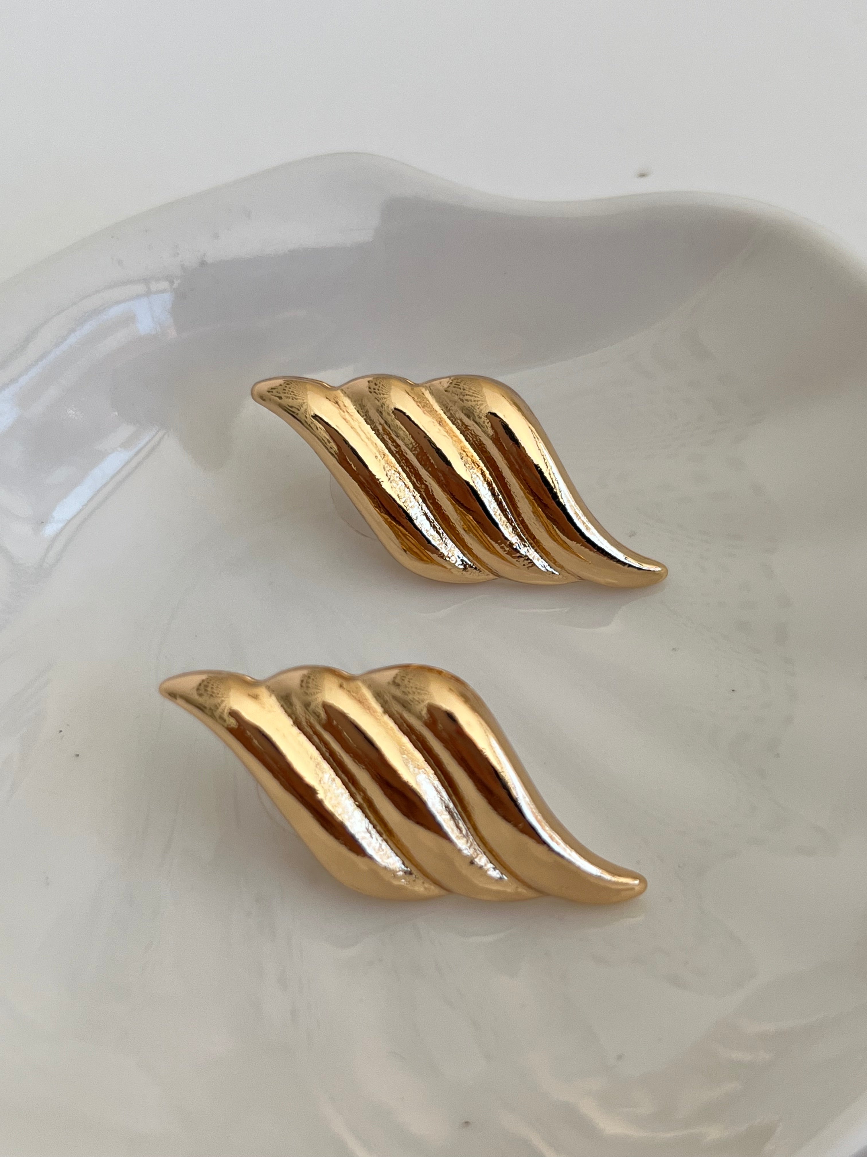 Estos son aretes de botón que proyectan un estilo clásico y lujoso, combinando la calidez del oro con y textura para mayor visibilidad.