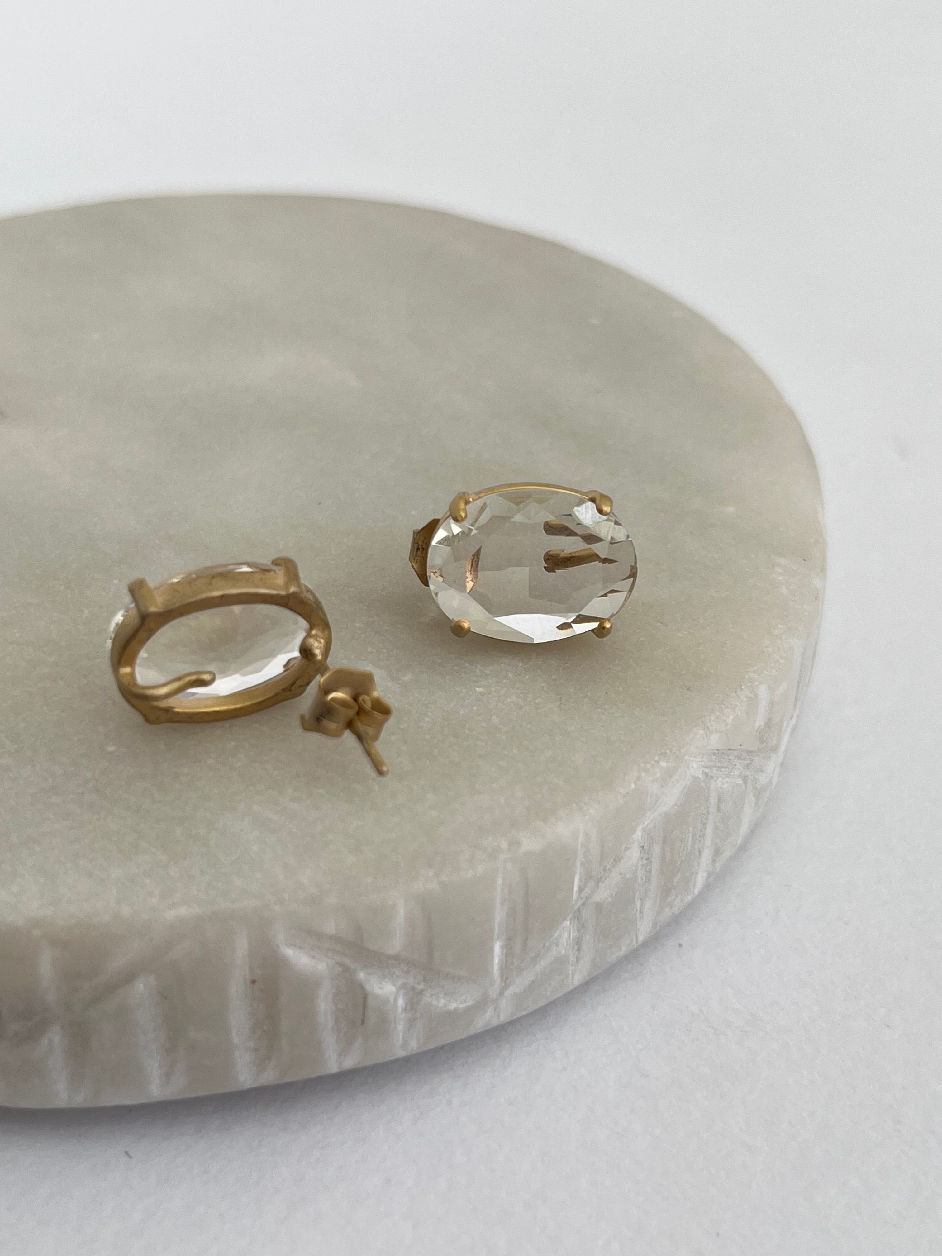 Estos aretes de botón son una pieza statement que ofrece una estética poderosa, moderna y escultural, inspirada en las formas aerodinámicas.
