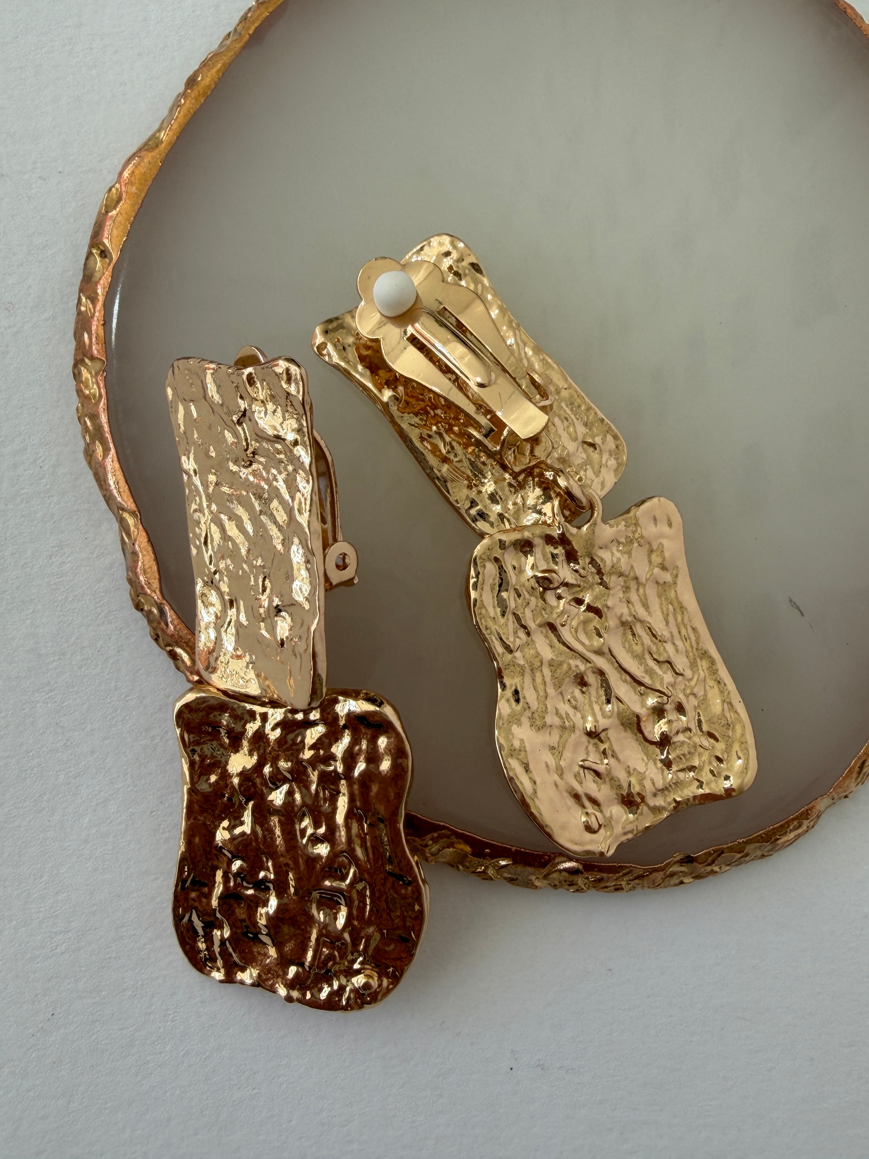 Los aretes Paloma tienen acabado "hammered" o martillado. Con seguro a presión ideales si no tienes orificio y perfectos para los eventos más glam.