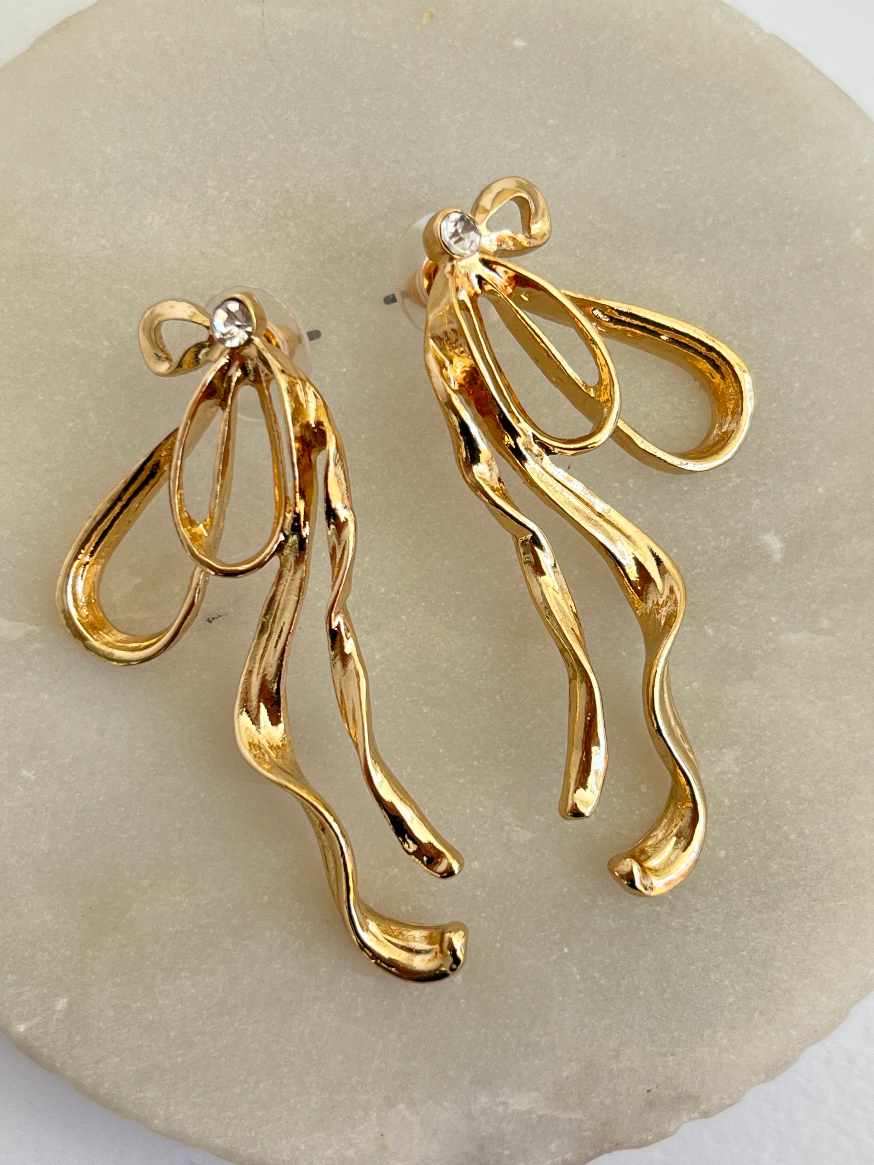 Estos aretes largos y colgantes presentan un diseño excepcional que combina movimiento y elegancia orgánica.
