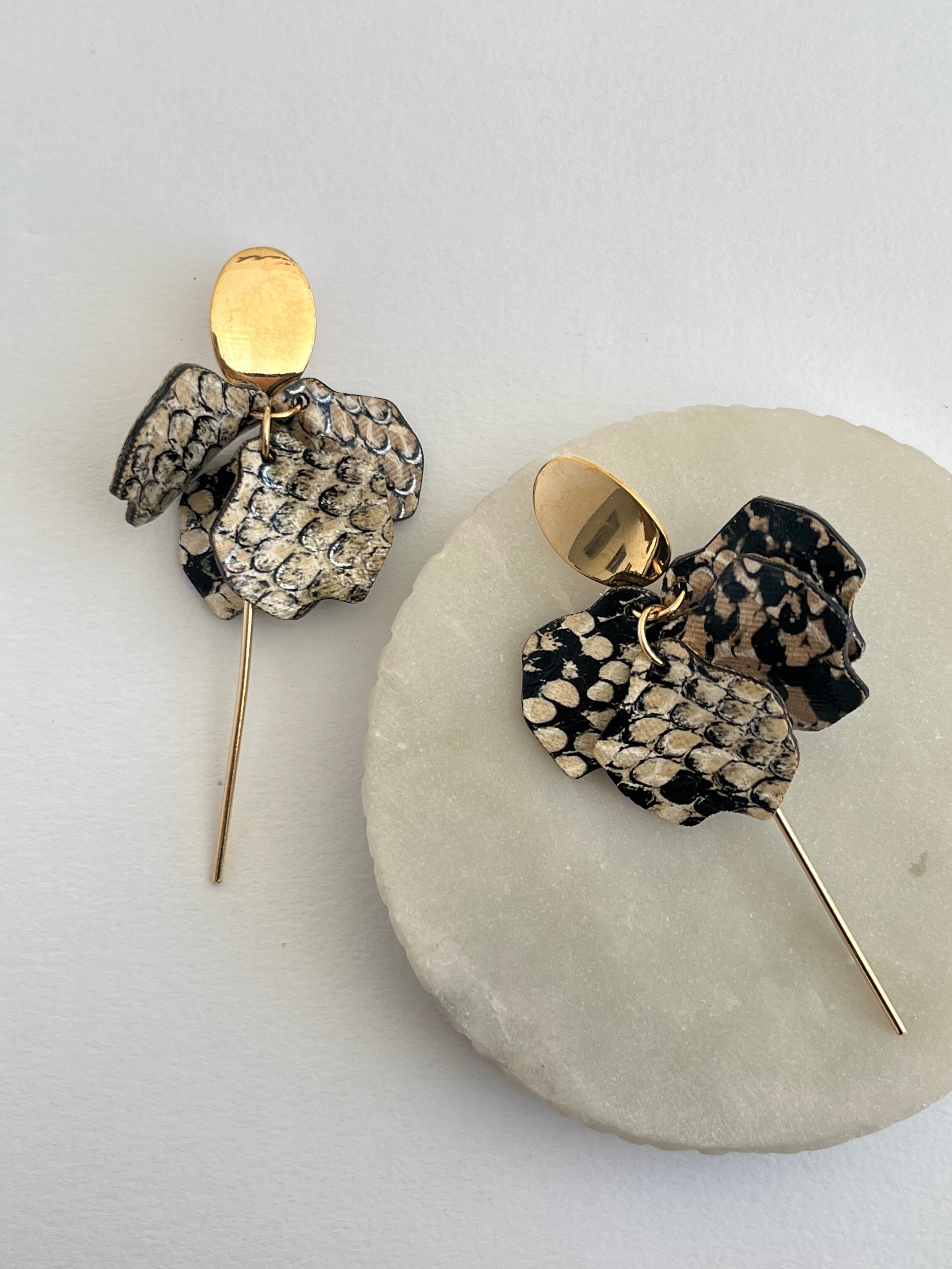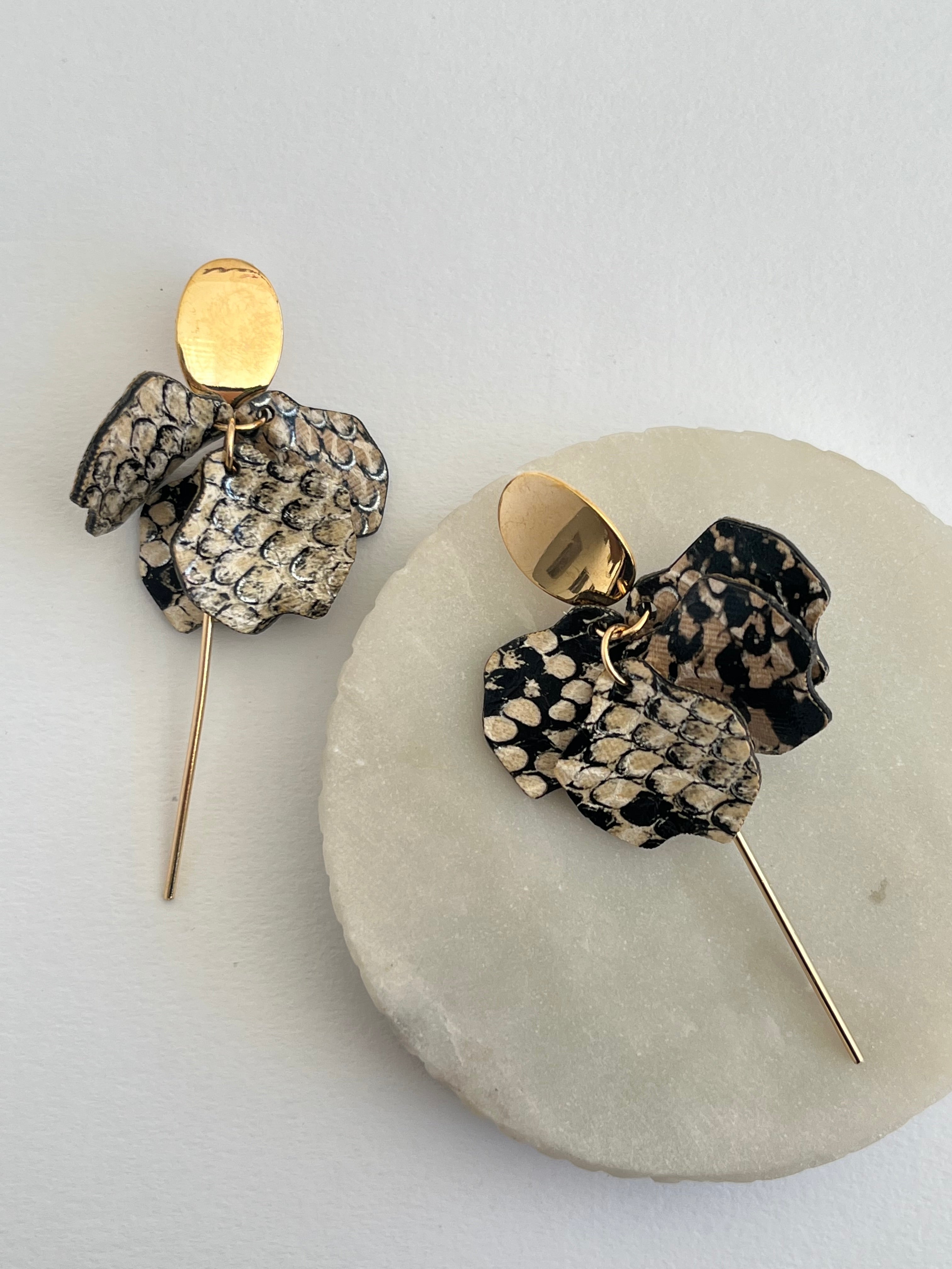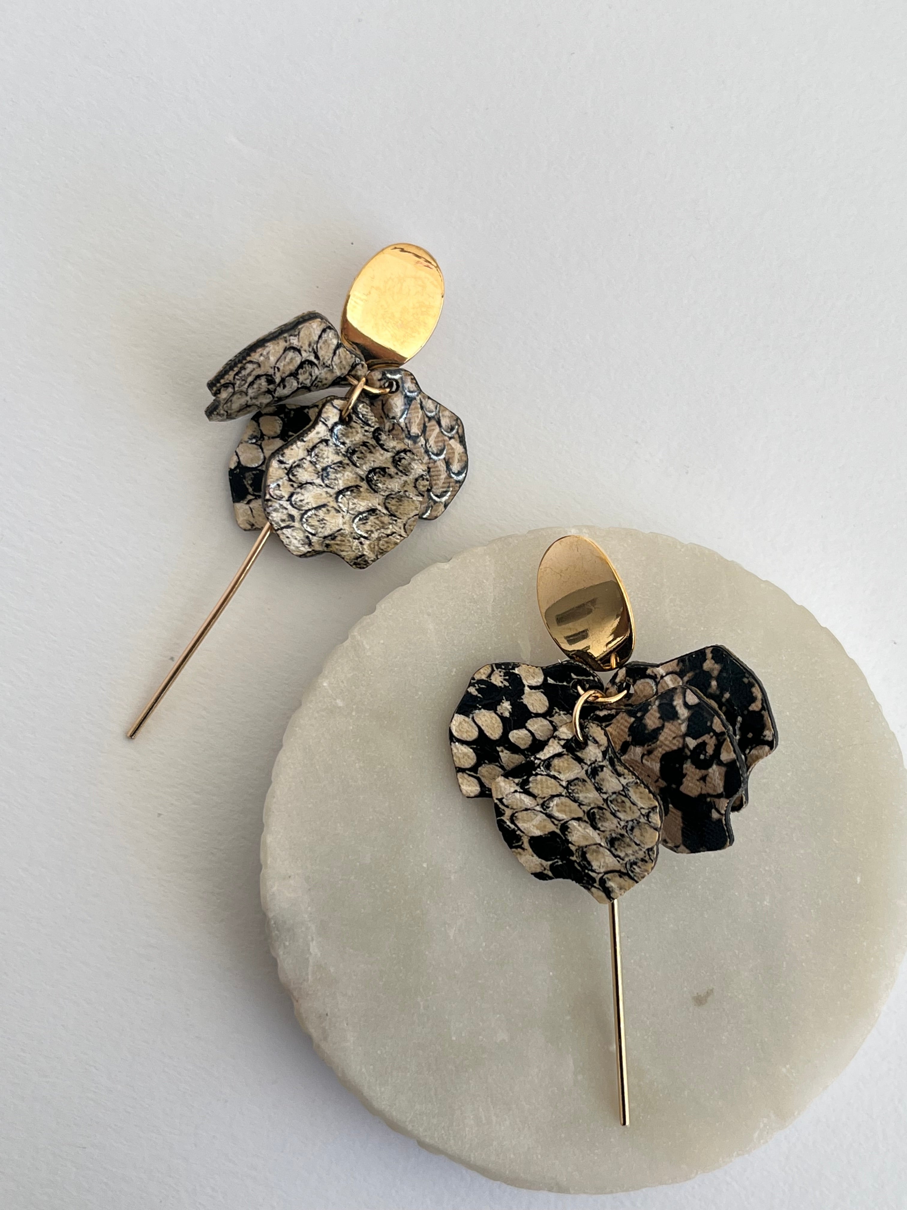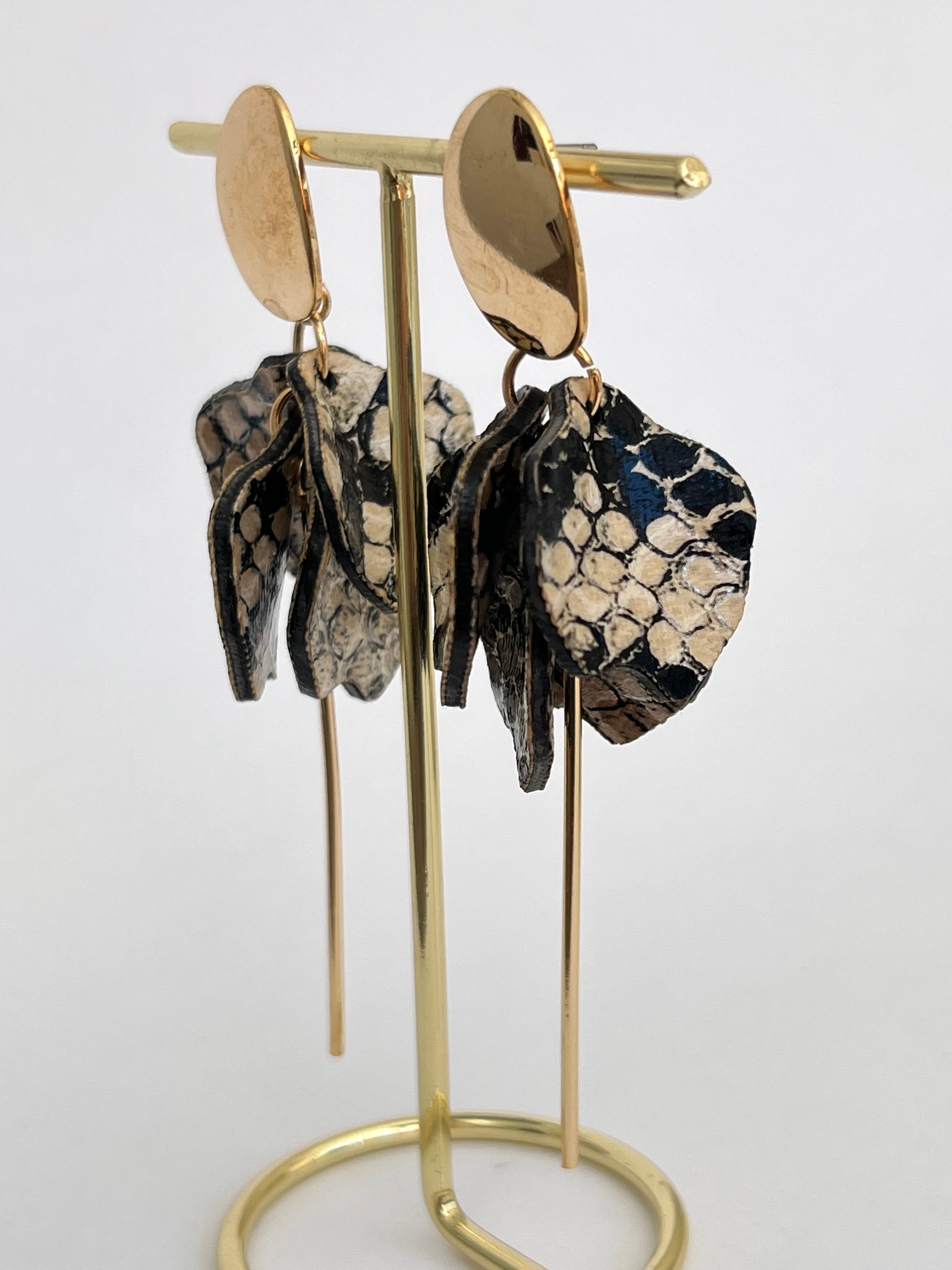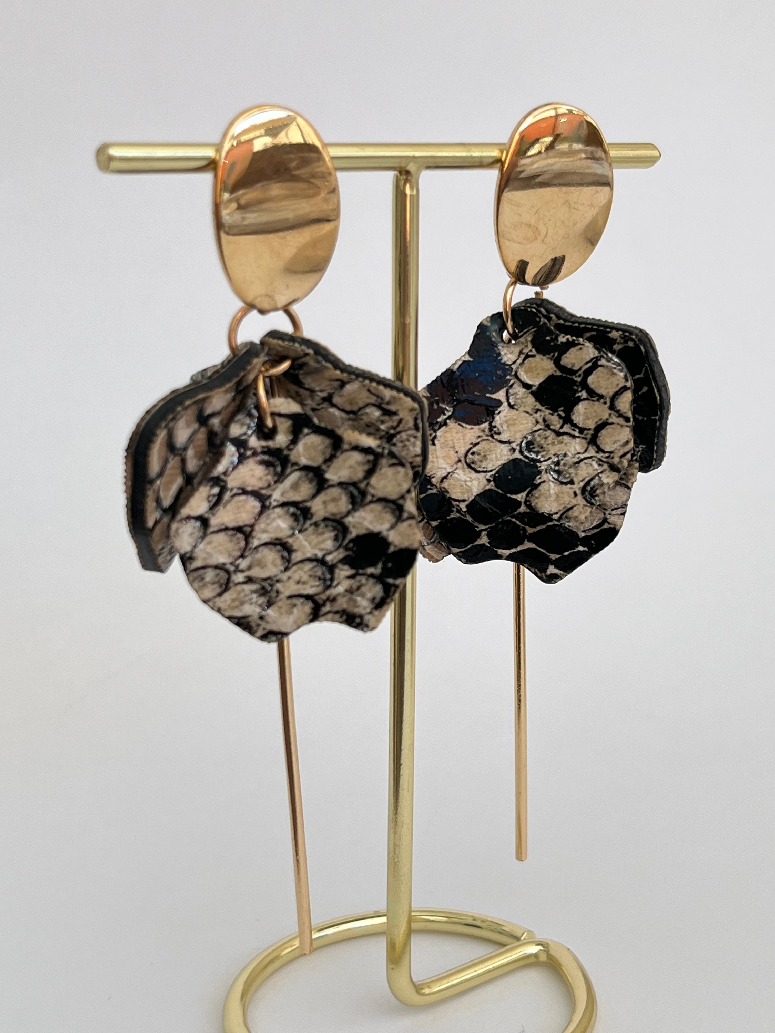 Estos son aretes largos y modernos que incorporan una llamativa textura y un diseño de estampado animal.