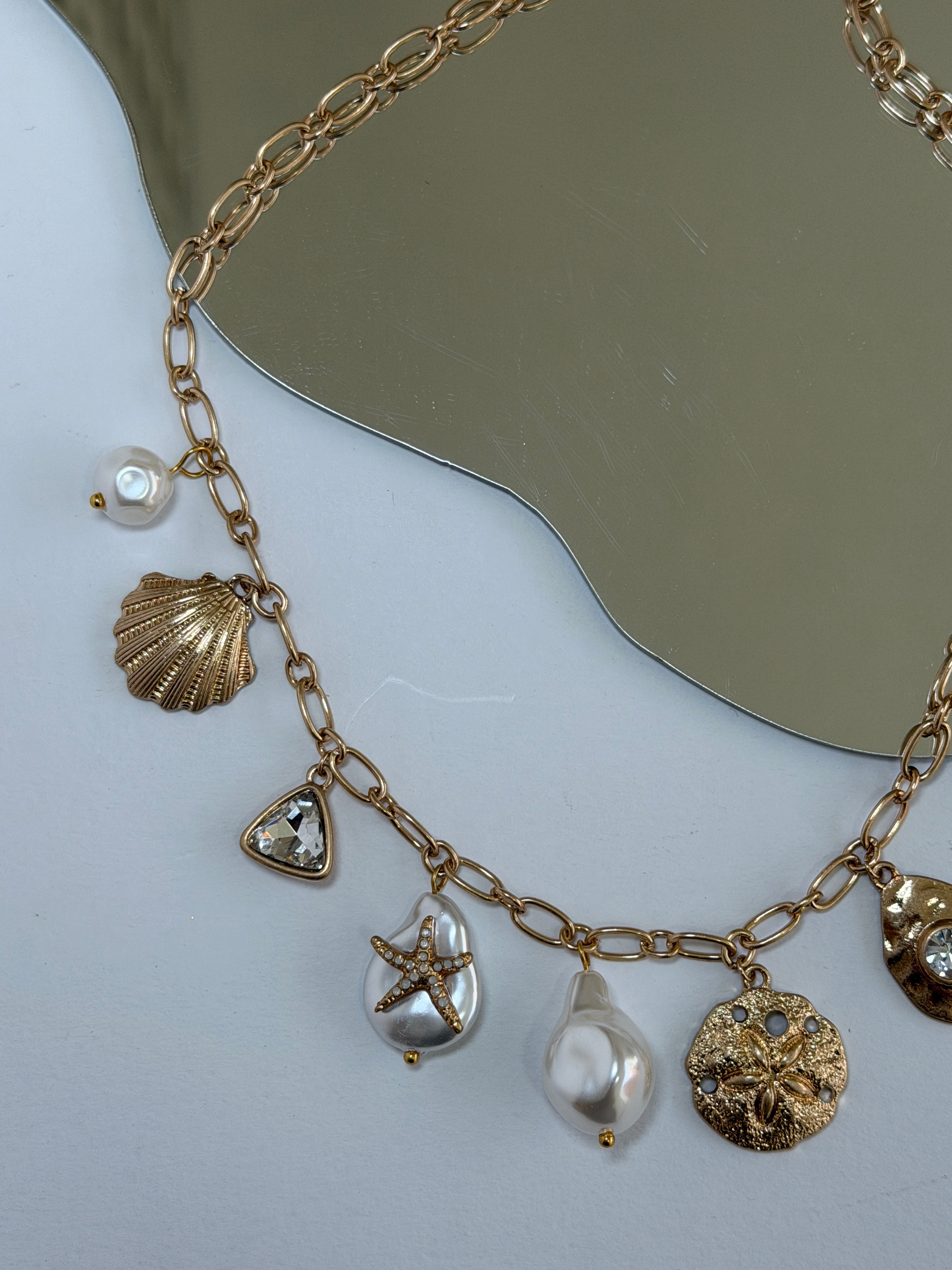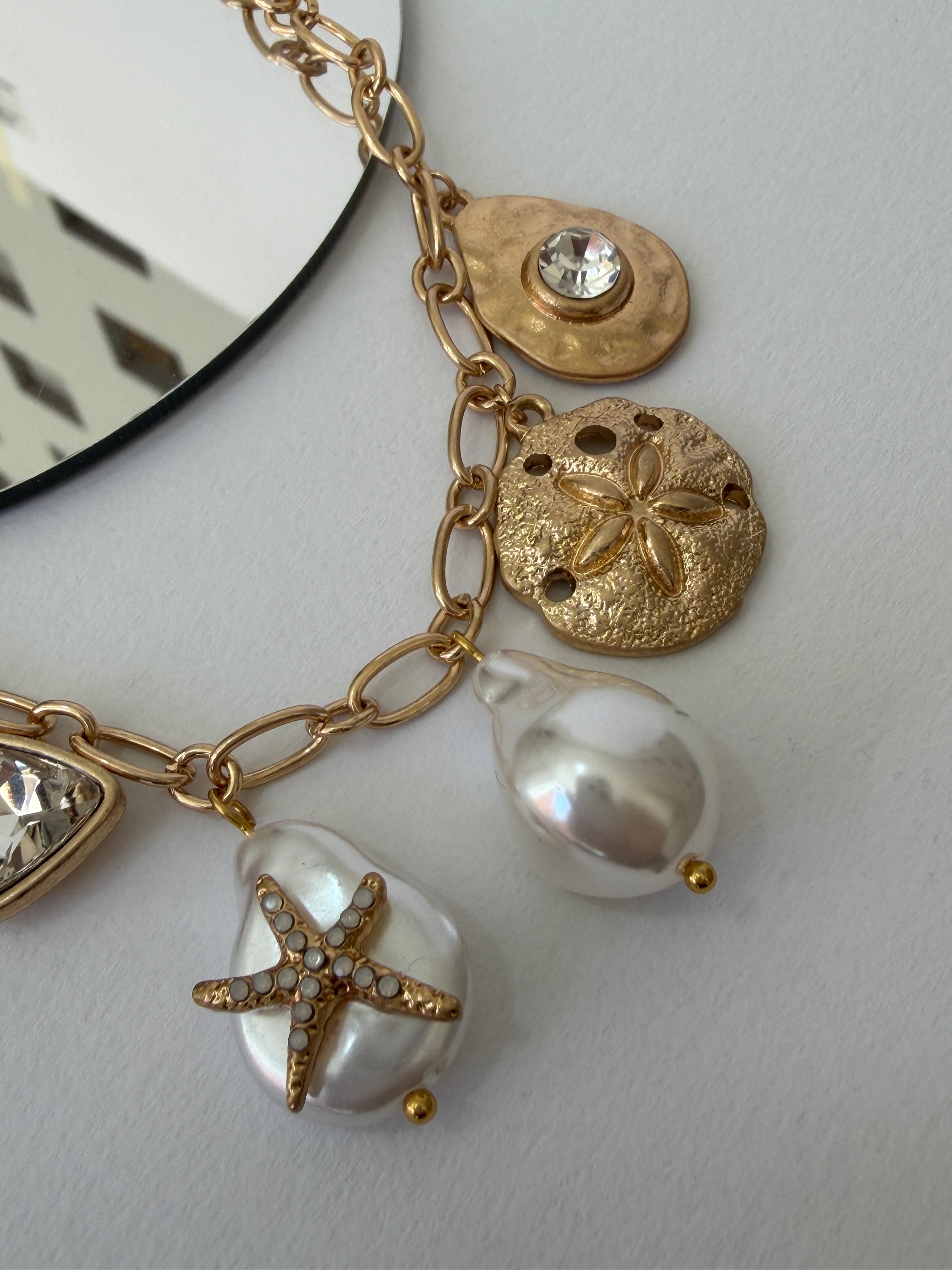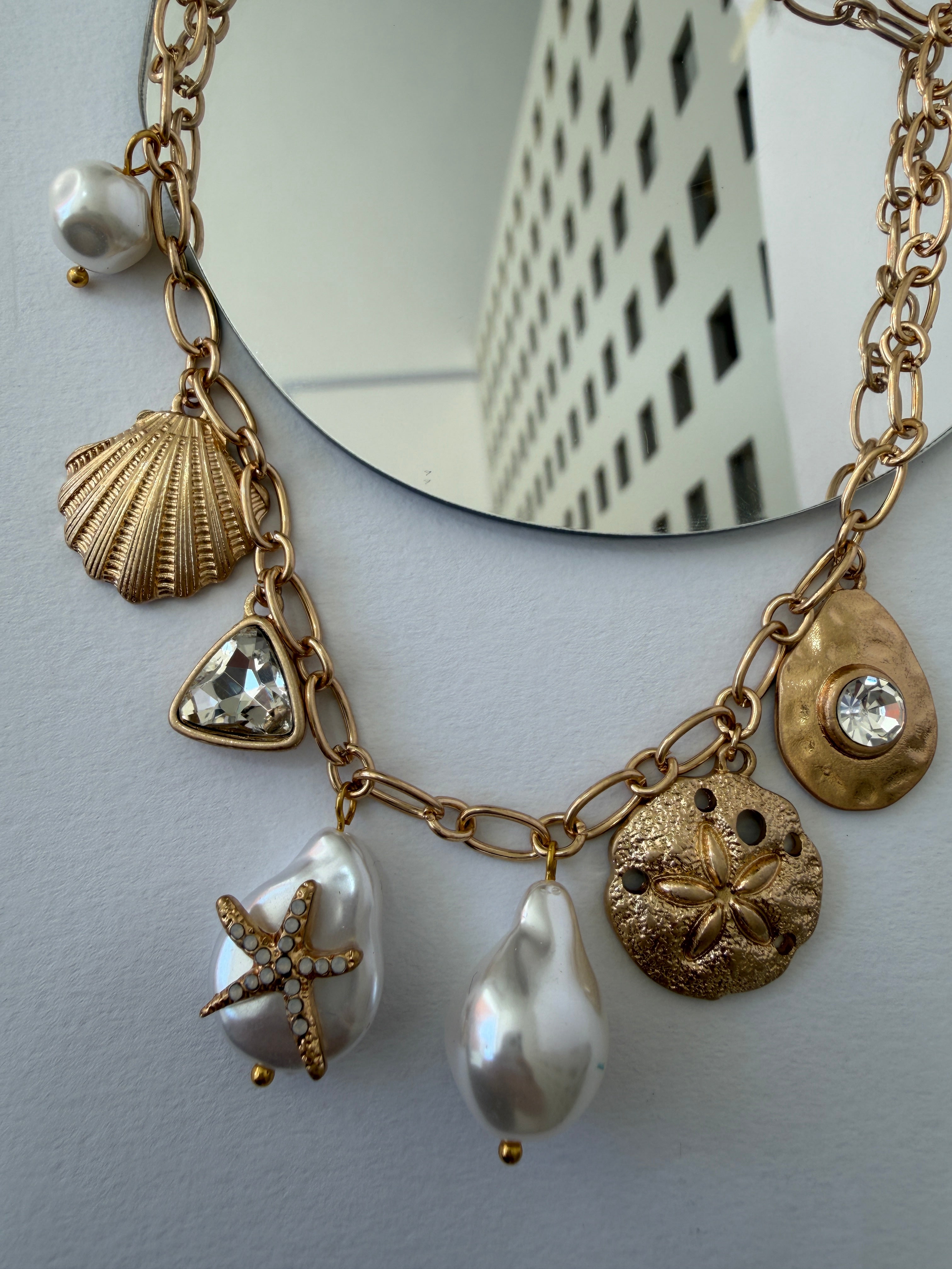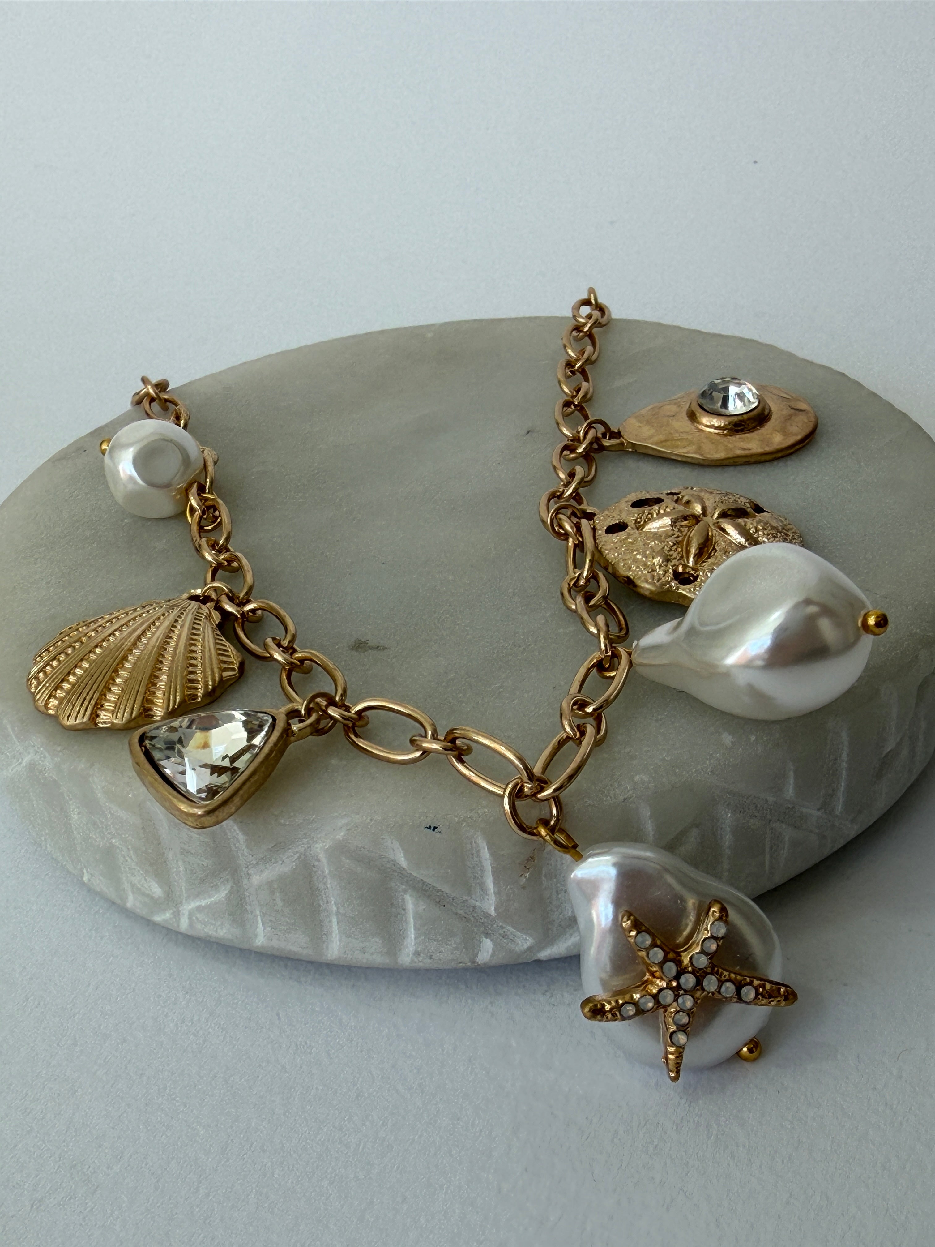 Perlas, conchitas marinas, estrellas marinas con incrustaciones de cristales de vidrio porque el verano siempre brilla!