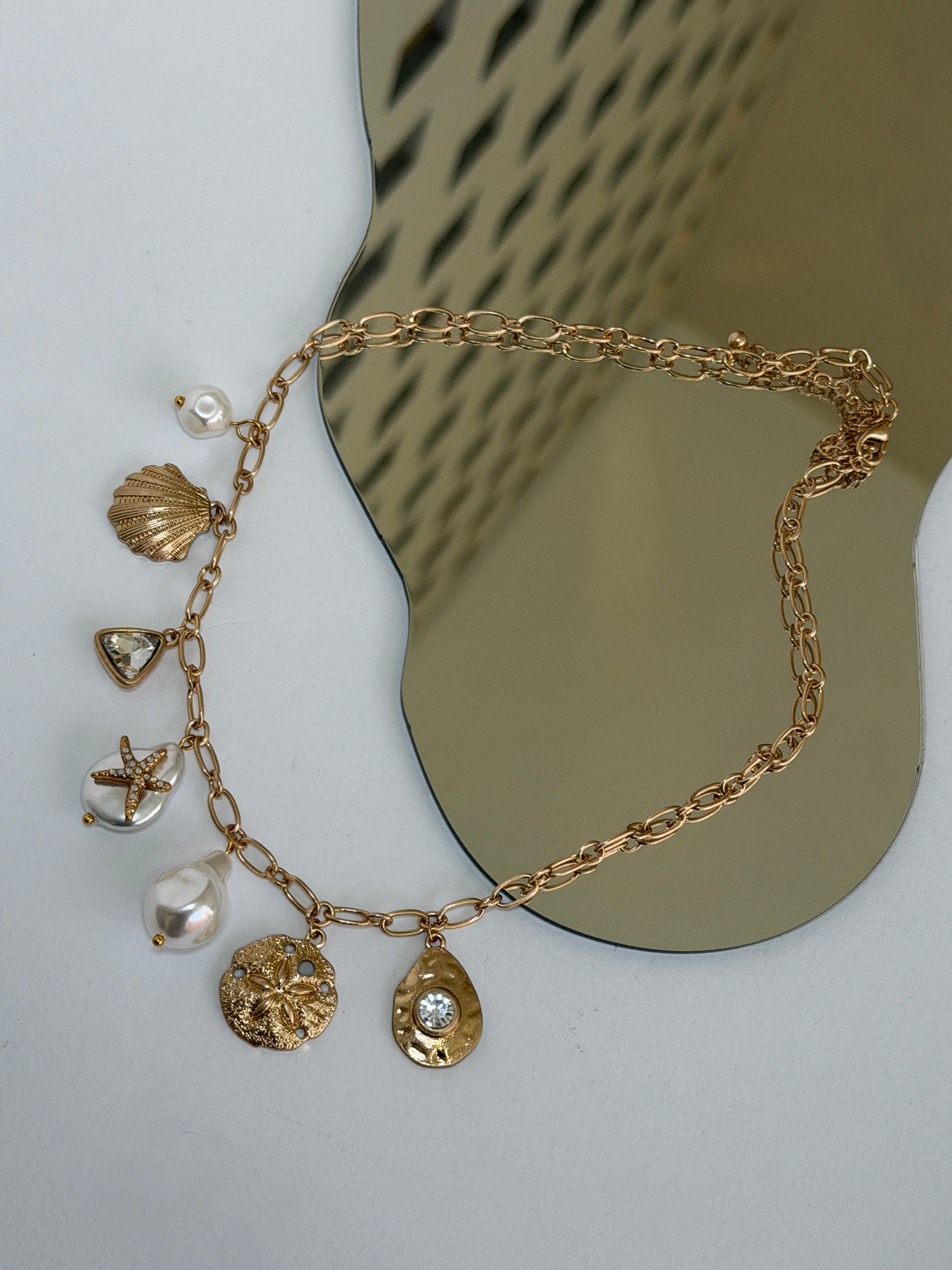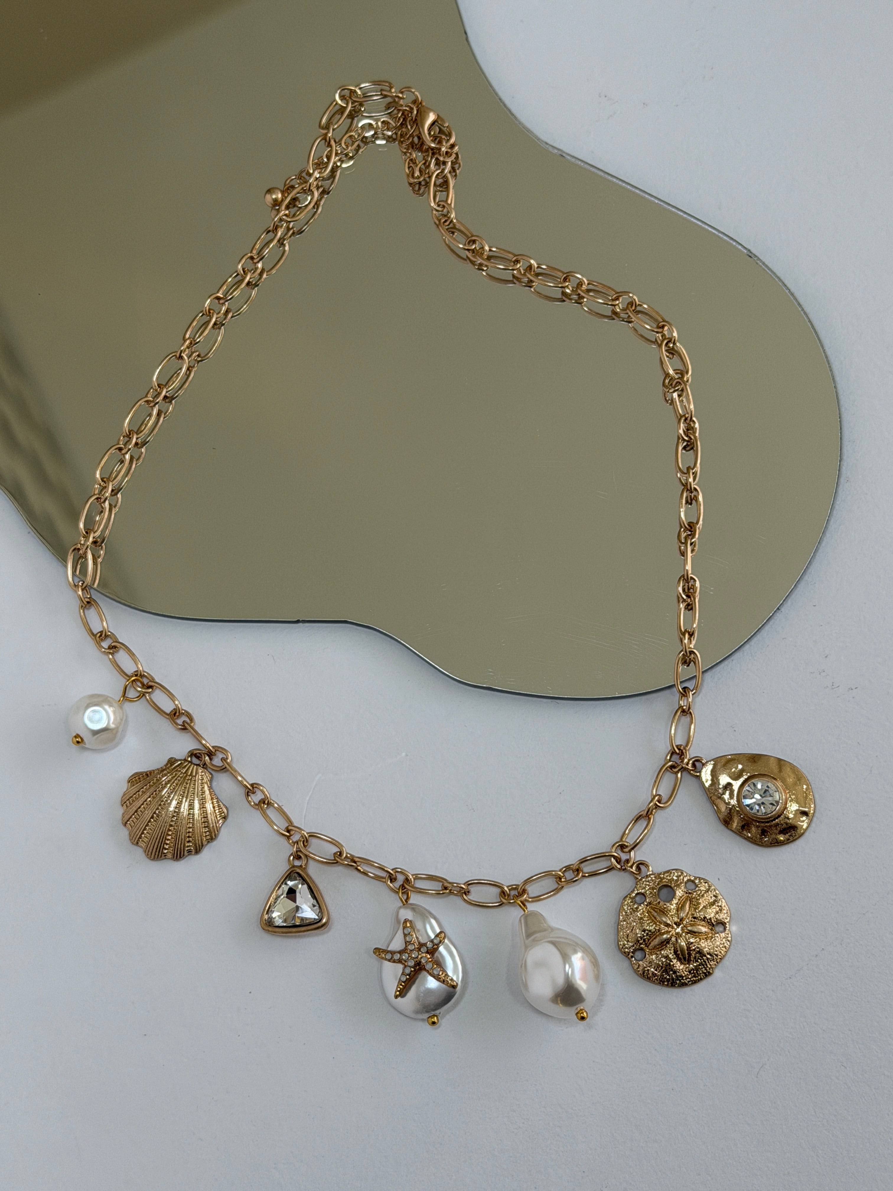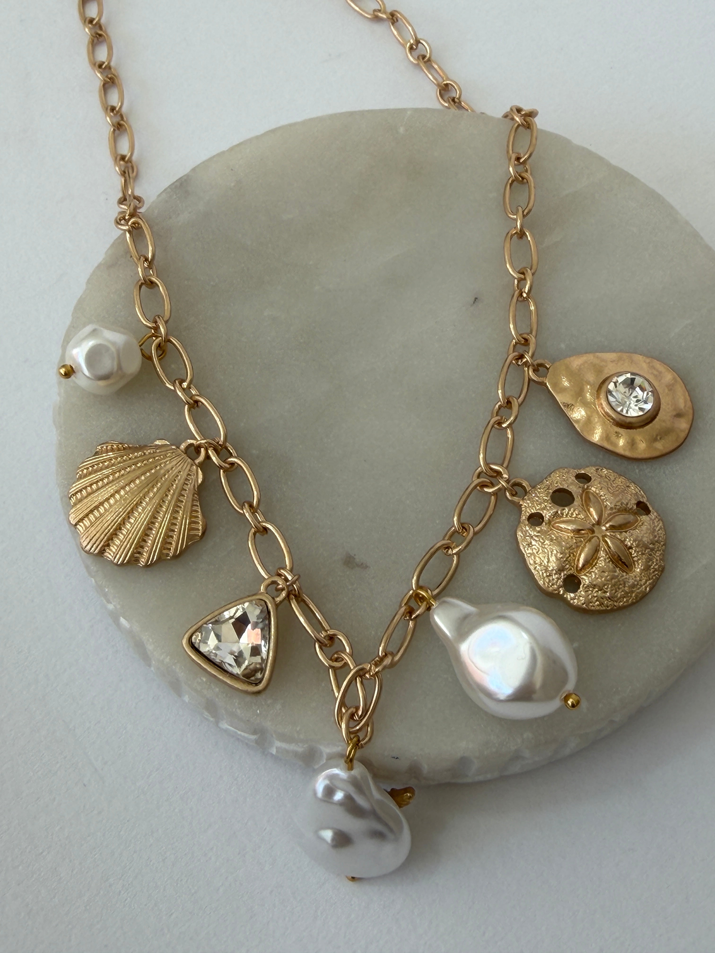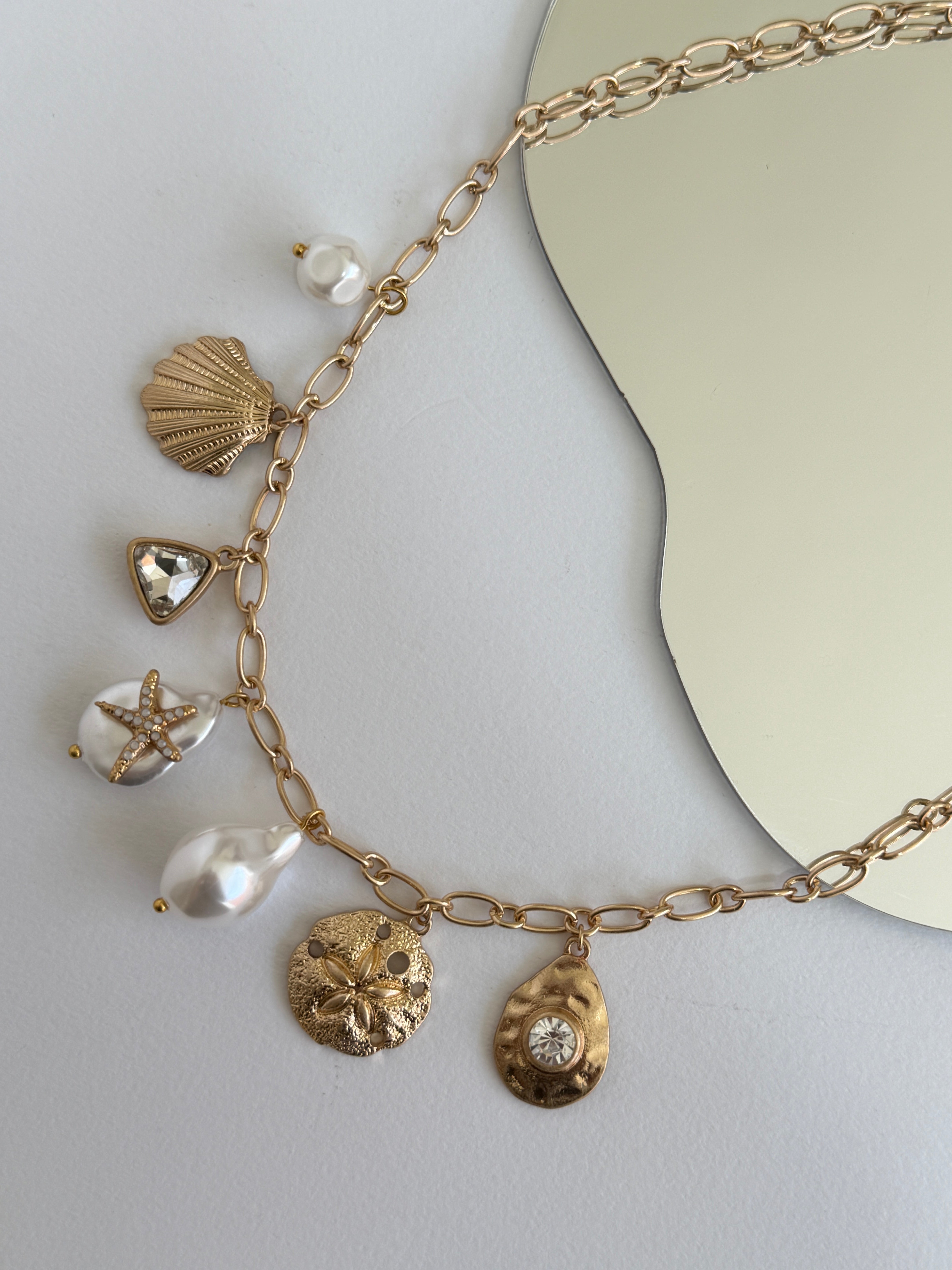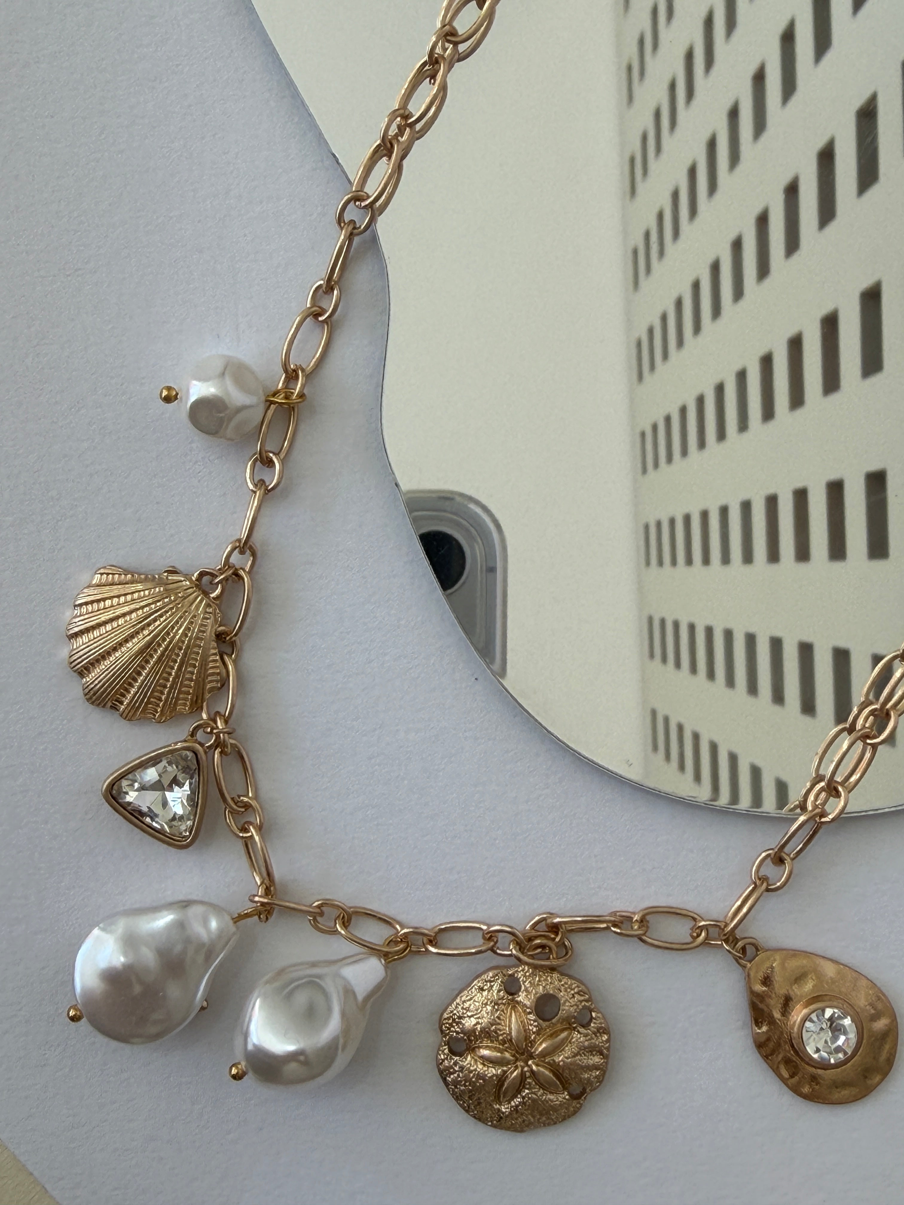 Perlas, conchitas marinas, estrellas marinas con incrustaciones de cristales de vidrio porque el verano siempre brilla!