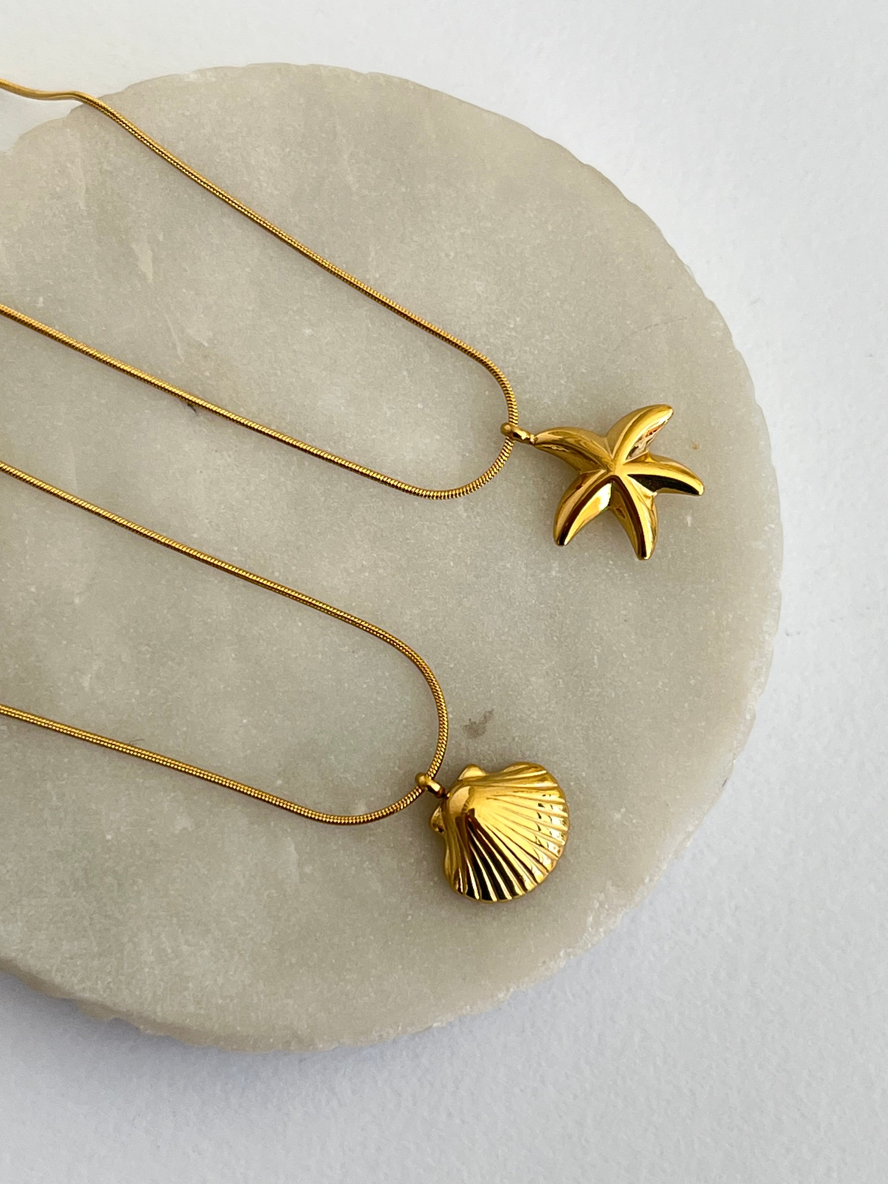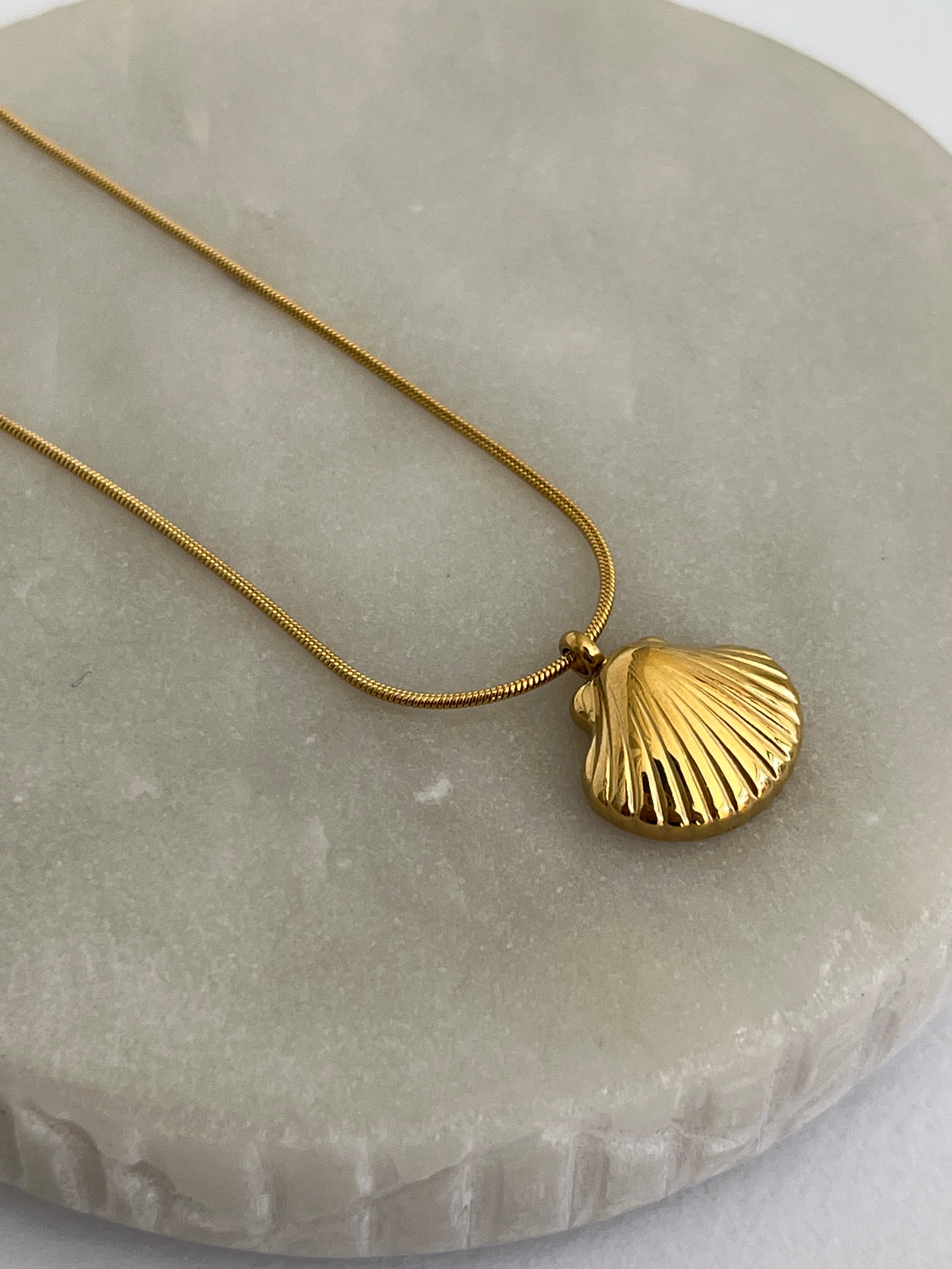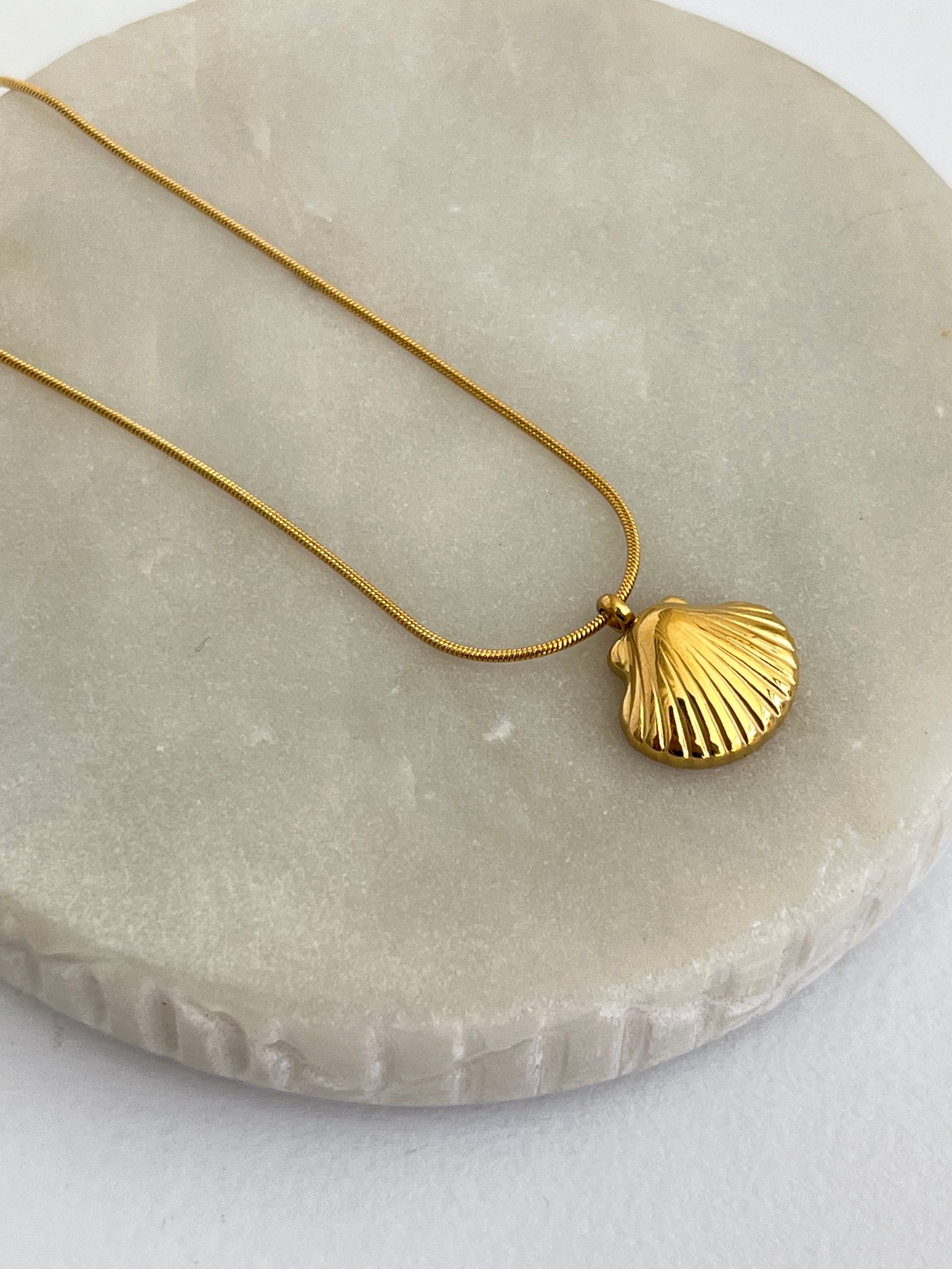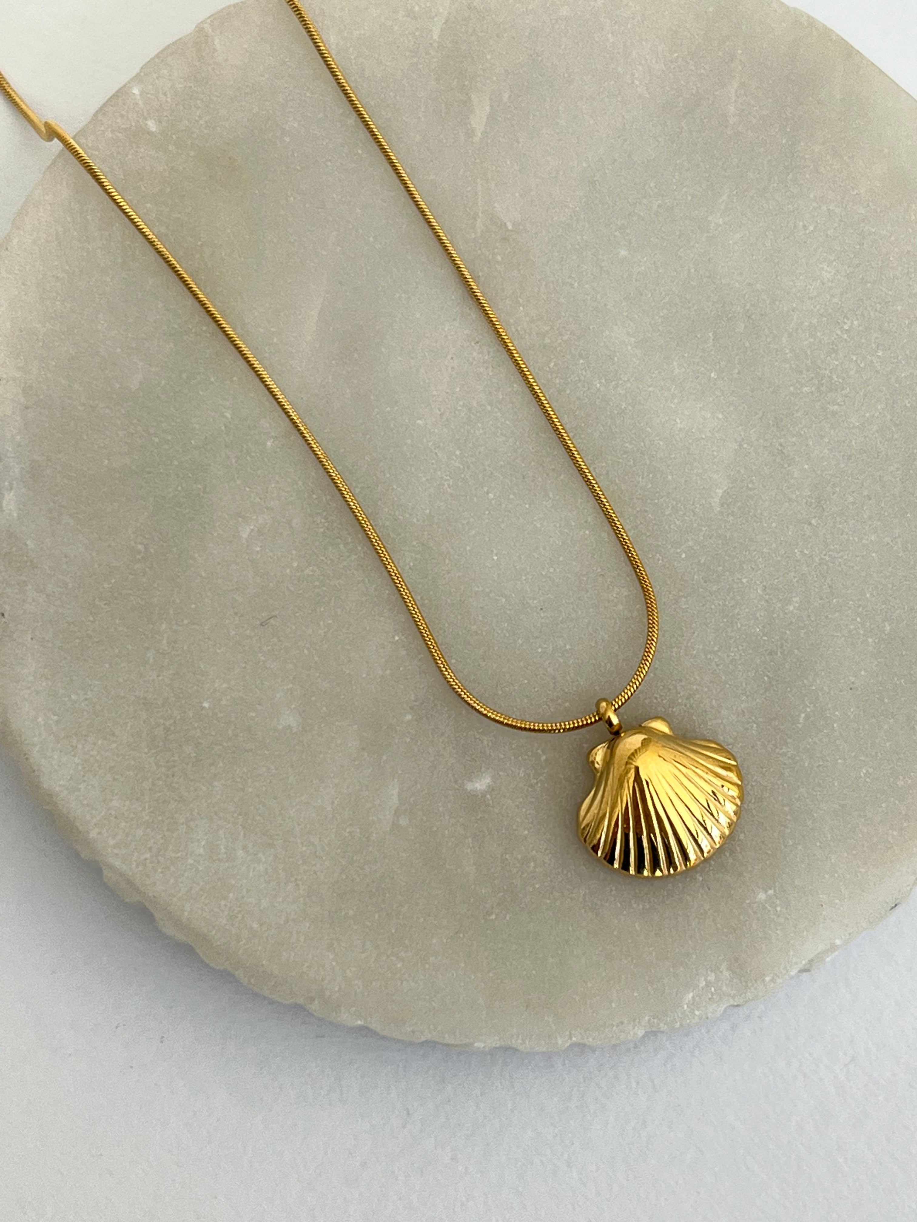 Delicado y fabricado en acero dorado, una hermosa conchita marina para que acompañe tus días soleados, con cadena de cola de rata también de acero dorado.