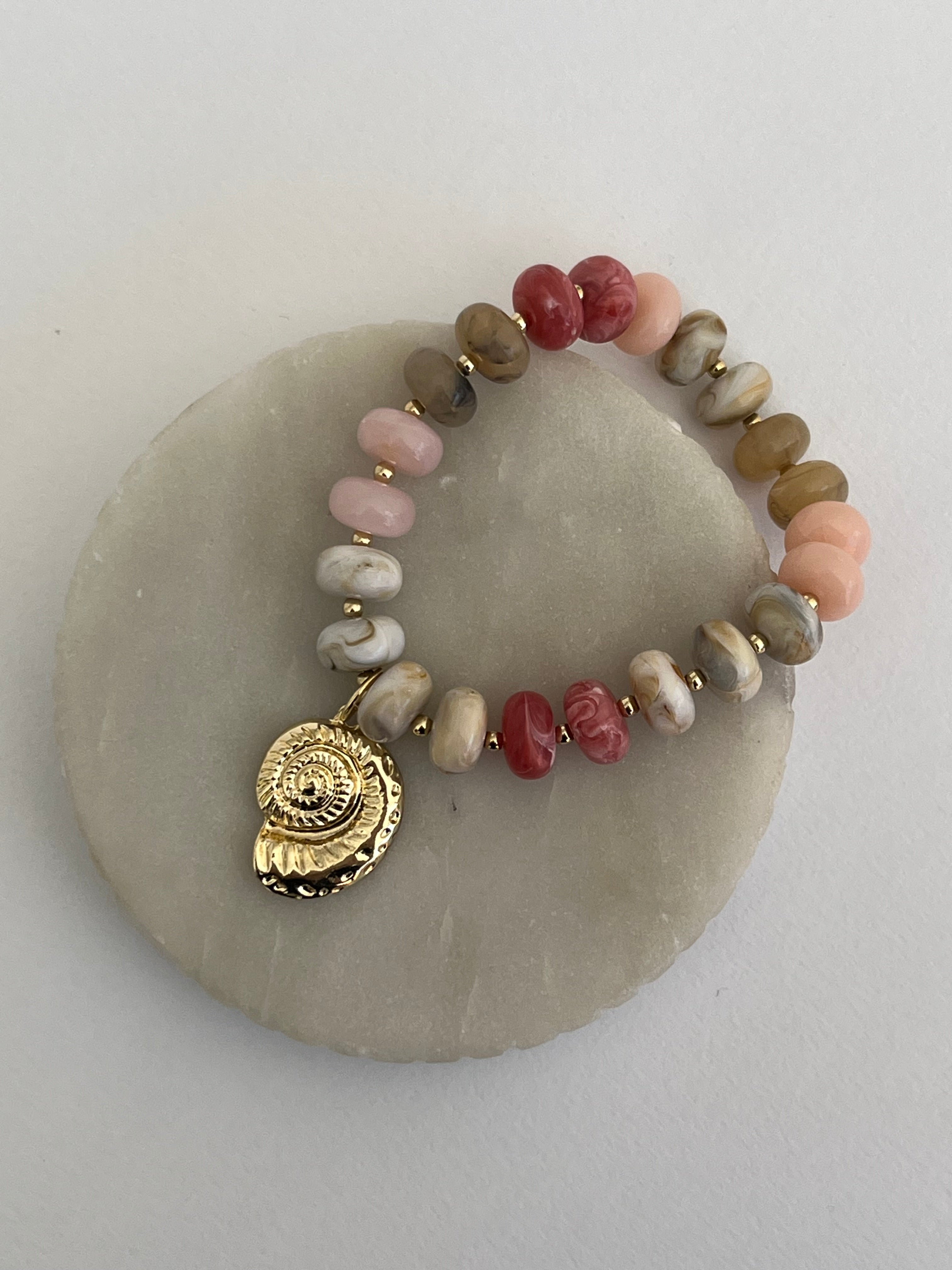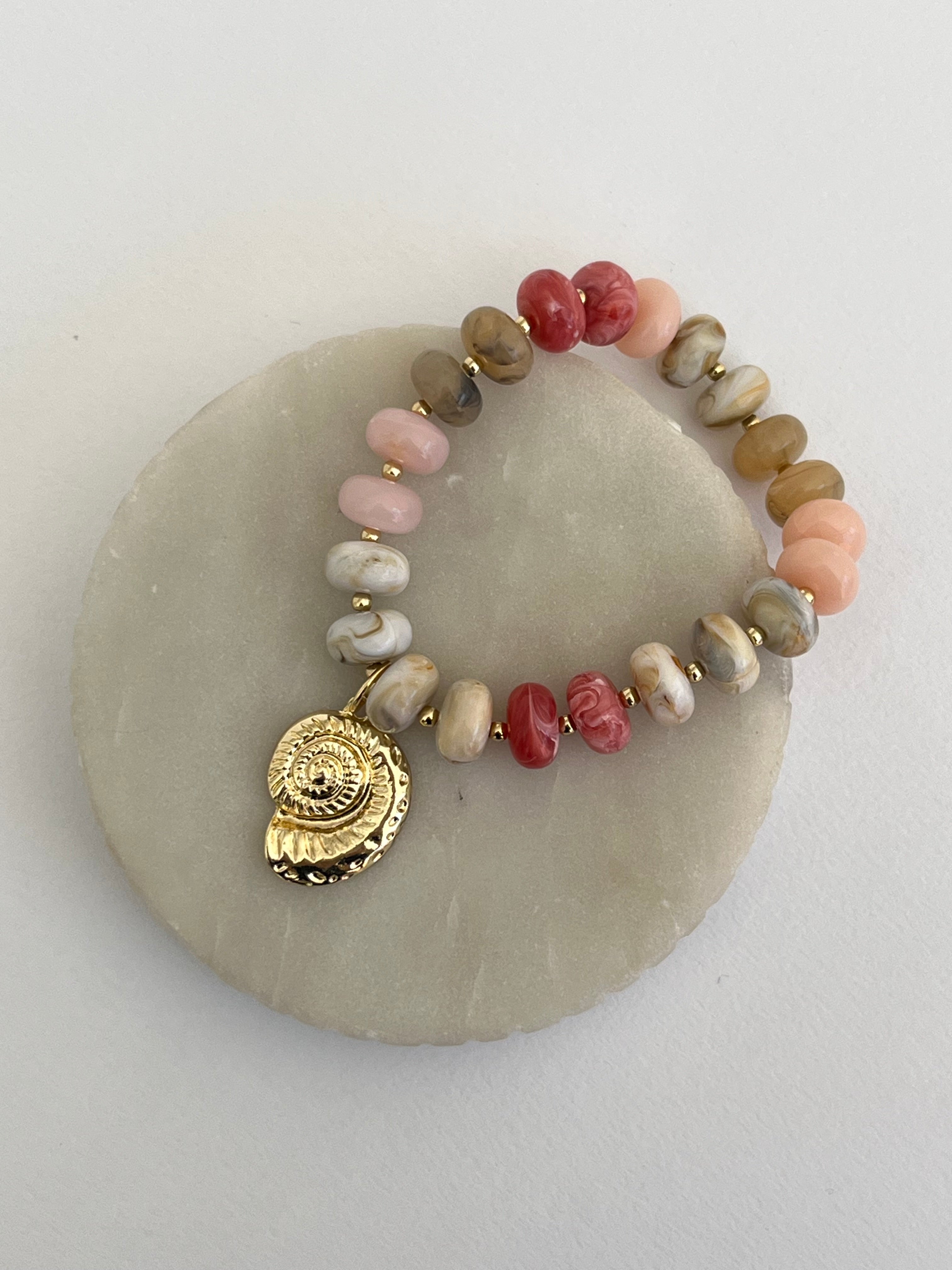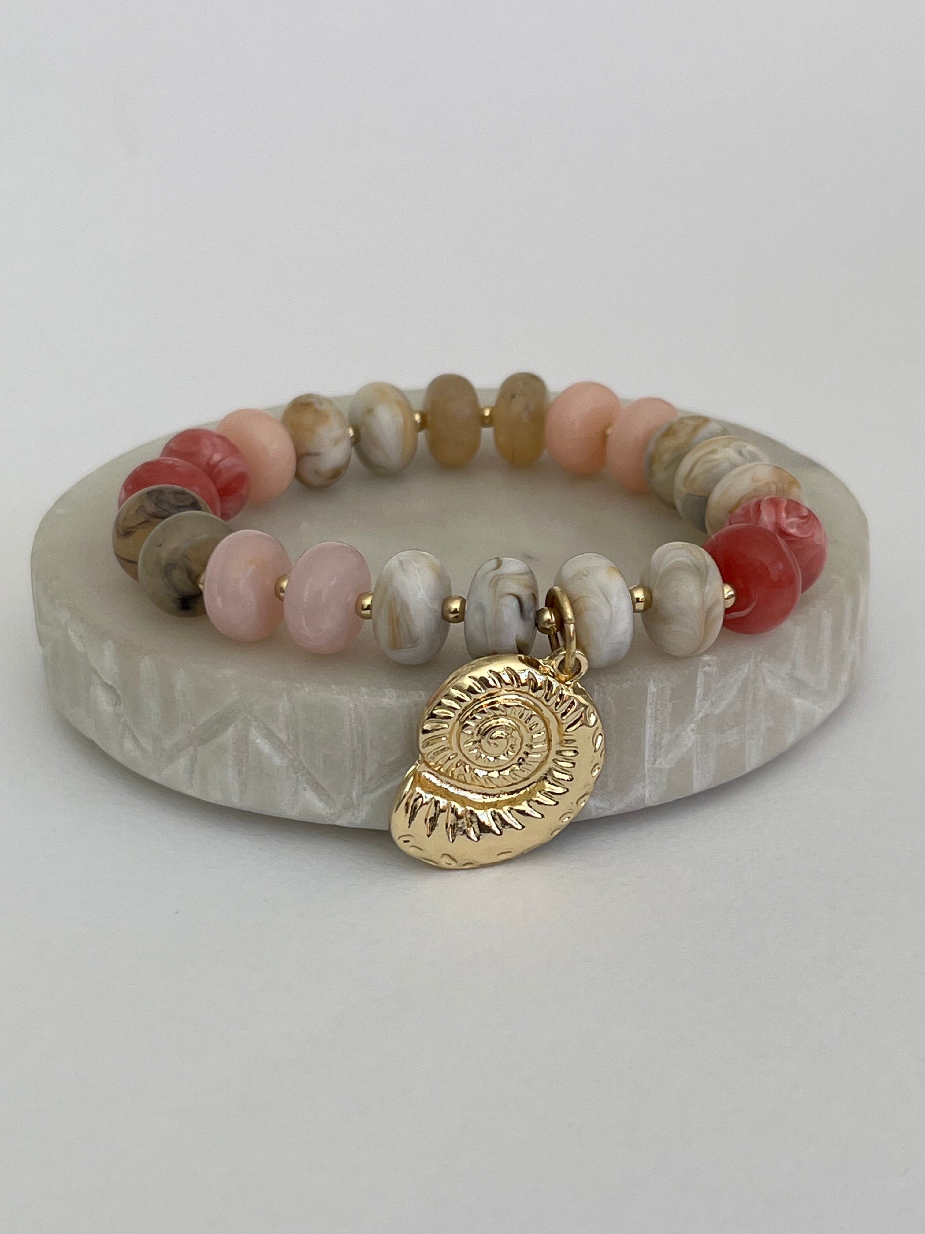 Esta pulsera elástica o de cuentas es una pieza vibrante y orgánica, perfecta para un estilo vacacional o veraniego.