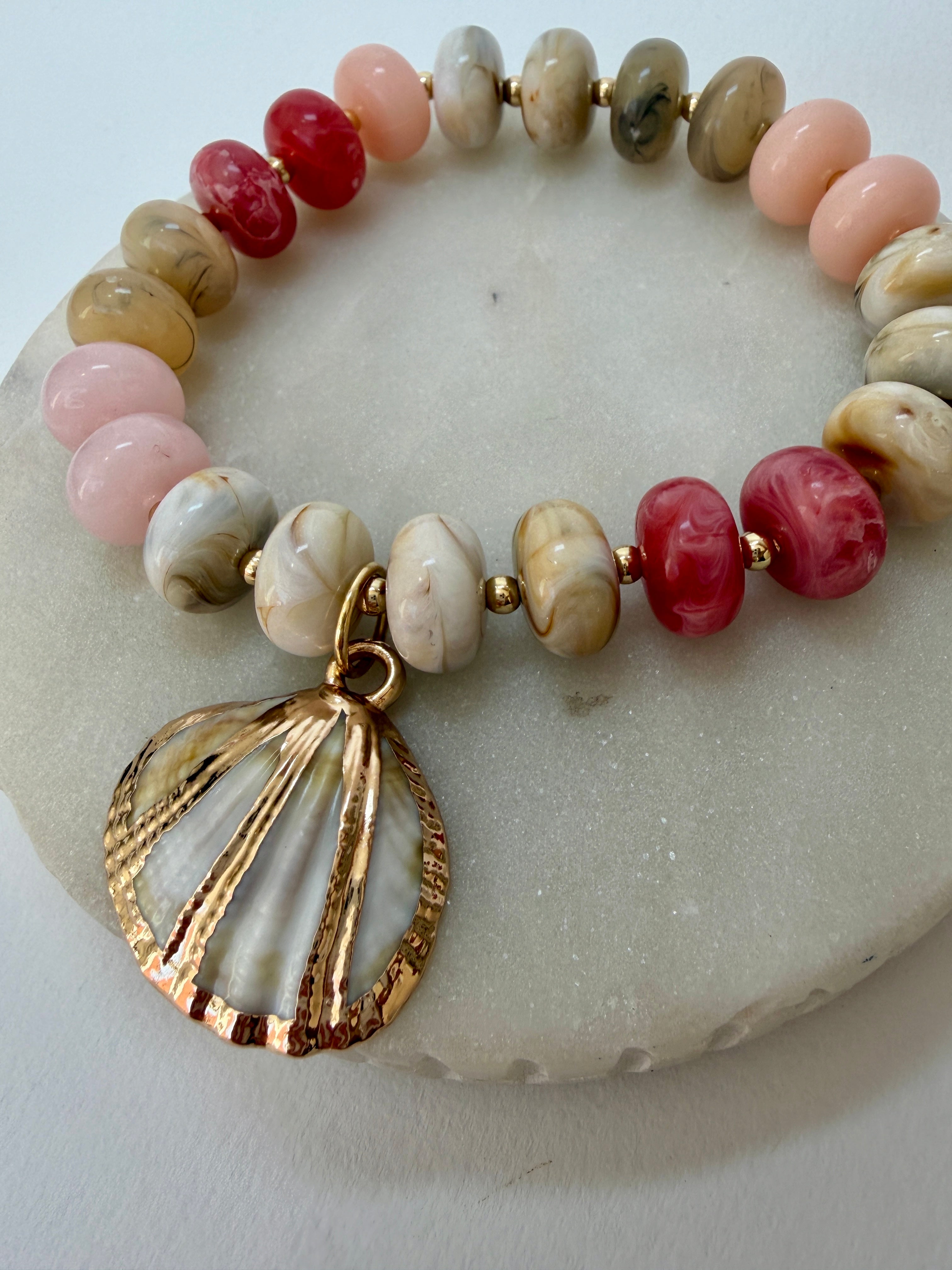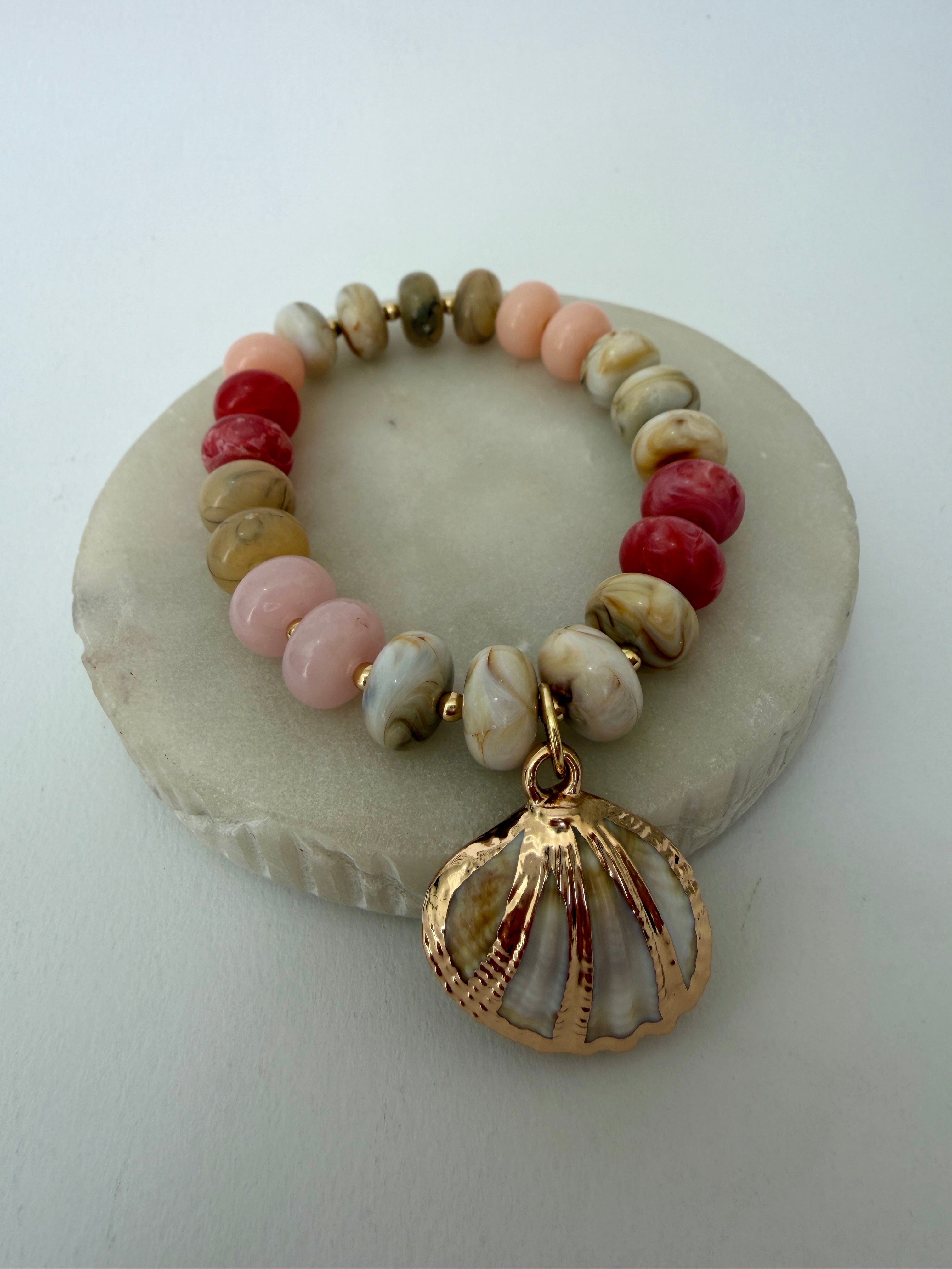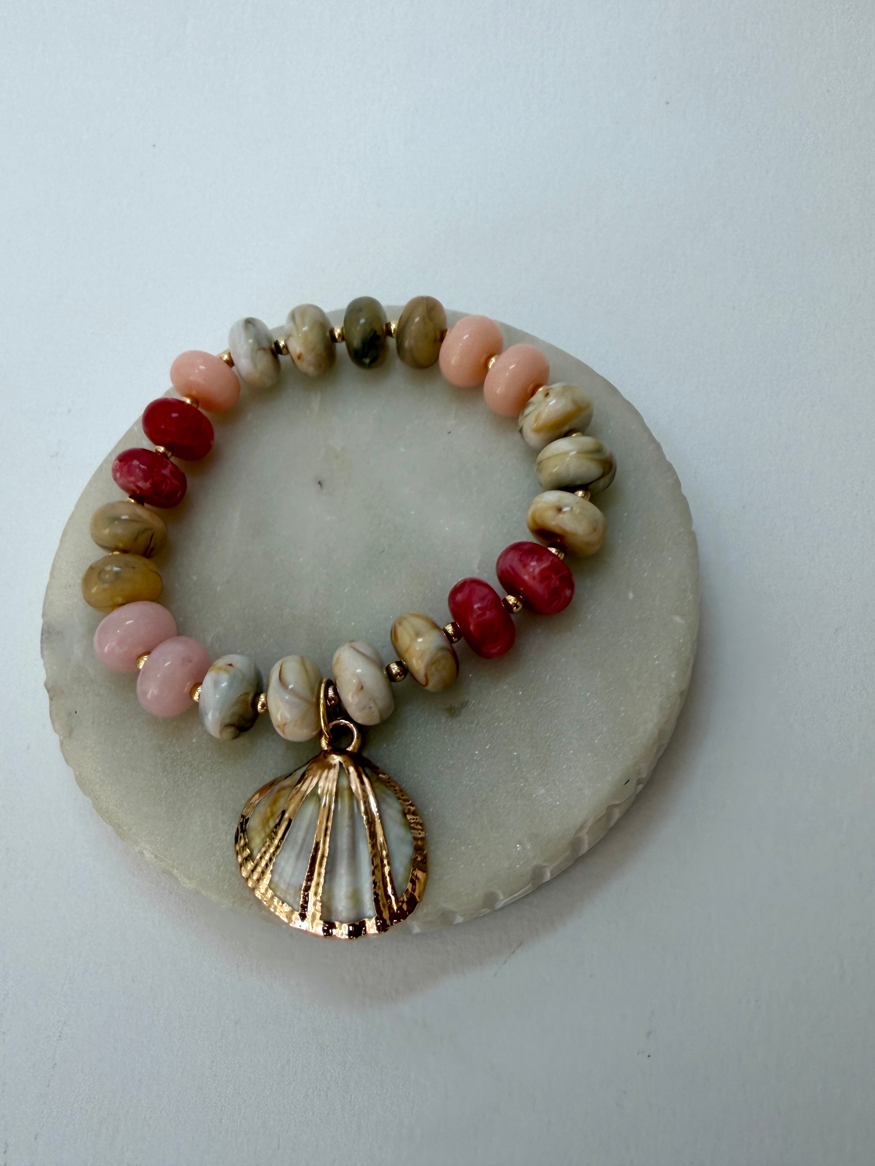 La pulsera Cinque Terre tiene los colores cálidos que nos recuerdan a un paisaje en el verano italiano. Con una presiosa conchita marina colgante, será el complemento que más uses este verano.